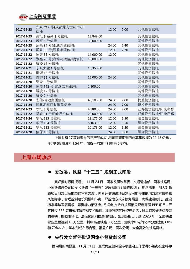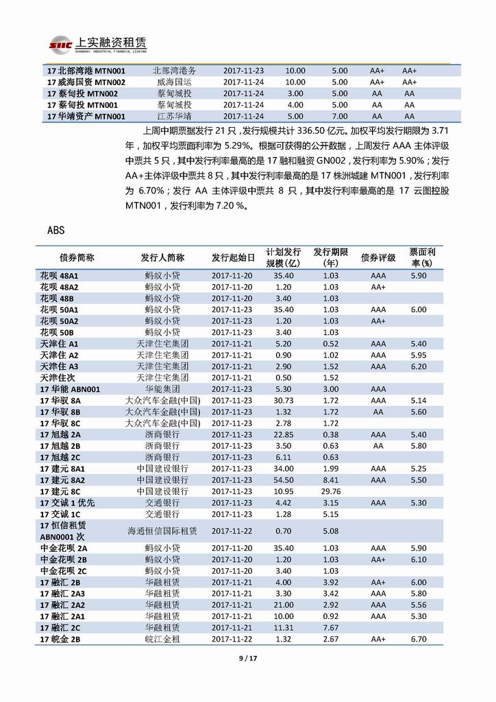 | 當(dāng)前位置:新聞中心 > 上實(shí)-融資工具周報(bào)20171117-20171124 | |||||