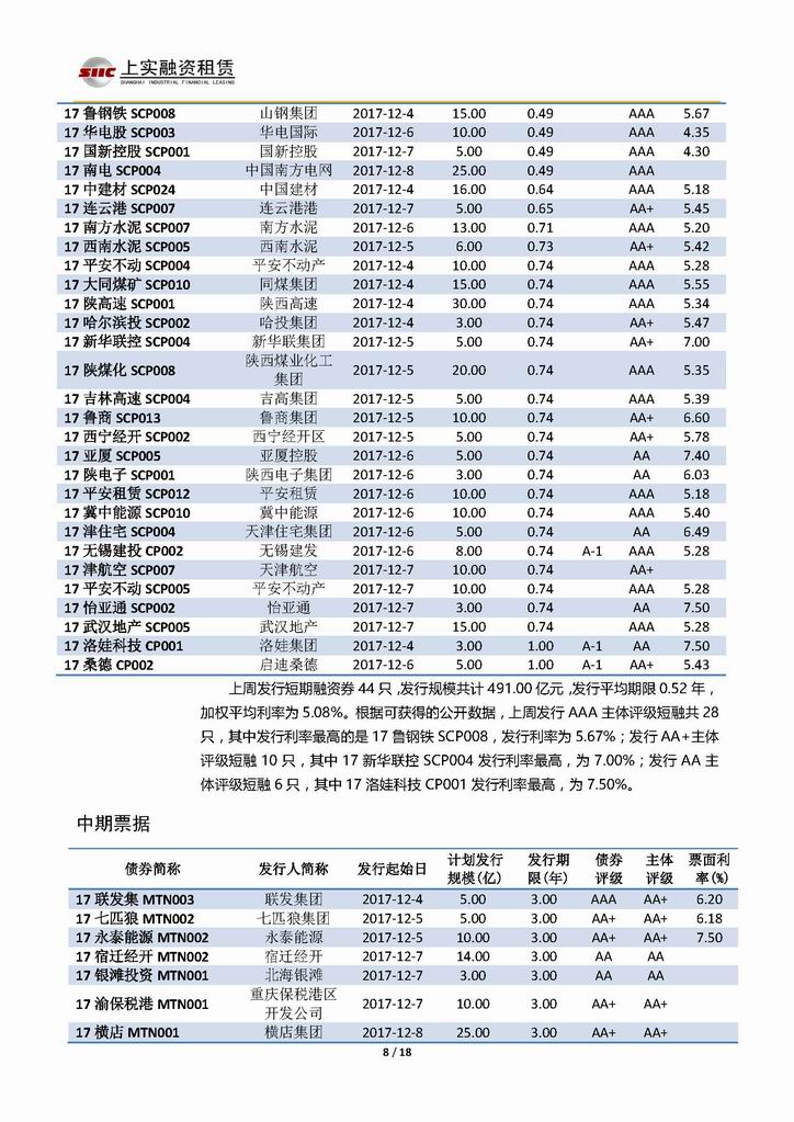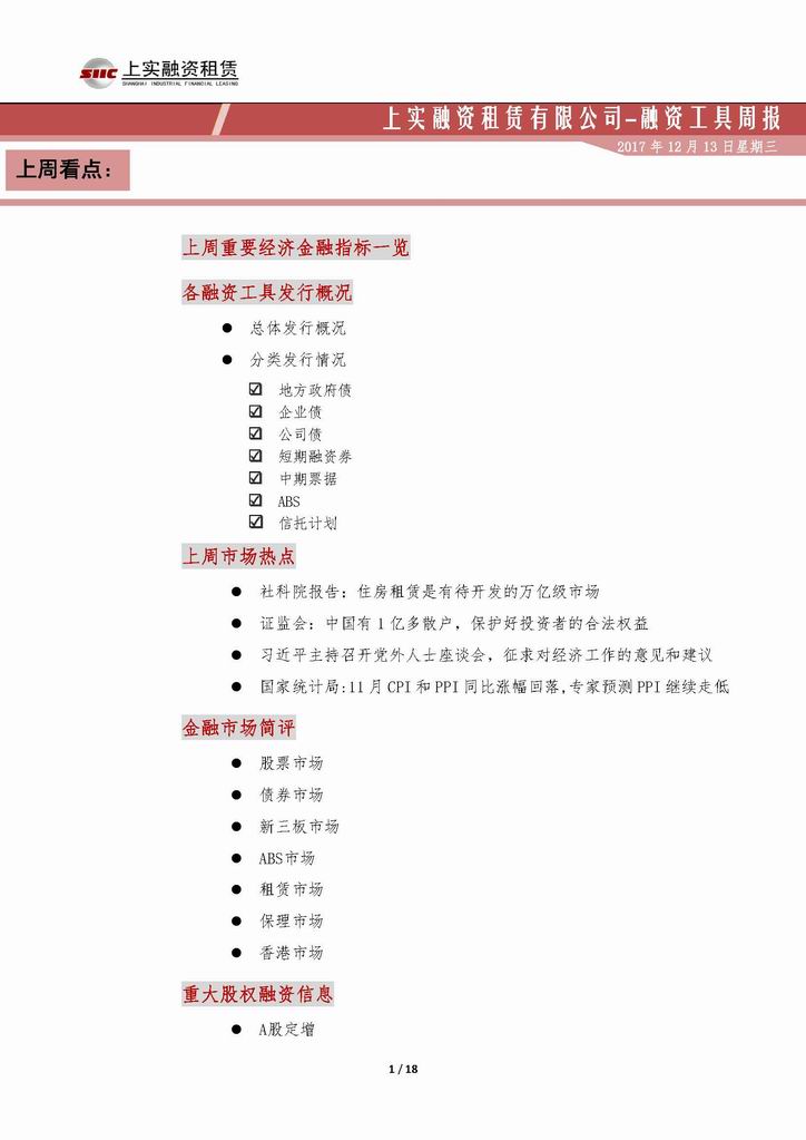 | 當(dāng)前位置:新聞中心 > 上實-融資工具周報20171201-20171208 | |||||