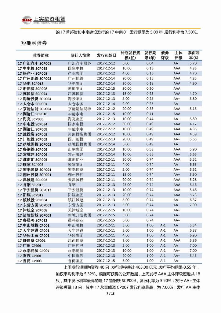 | 當(dāng)前位置:新聞中心 > 上實(shí)-融資工具周報(bào)20171208-20171215 | |||||