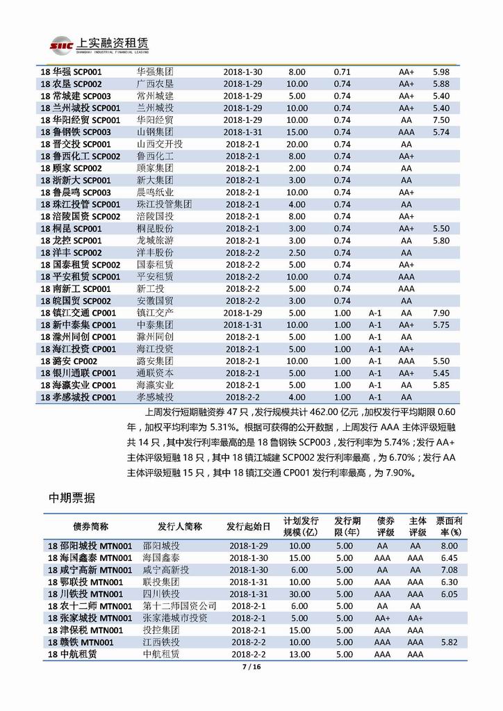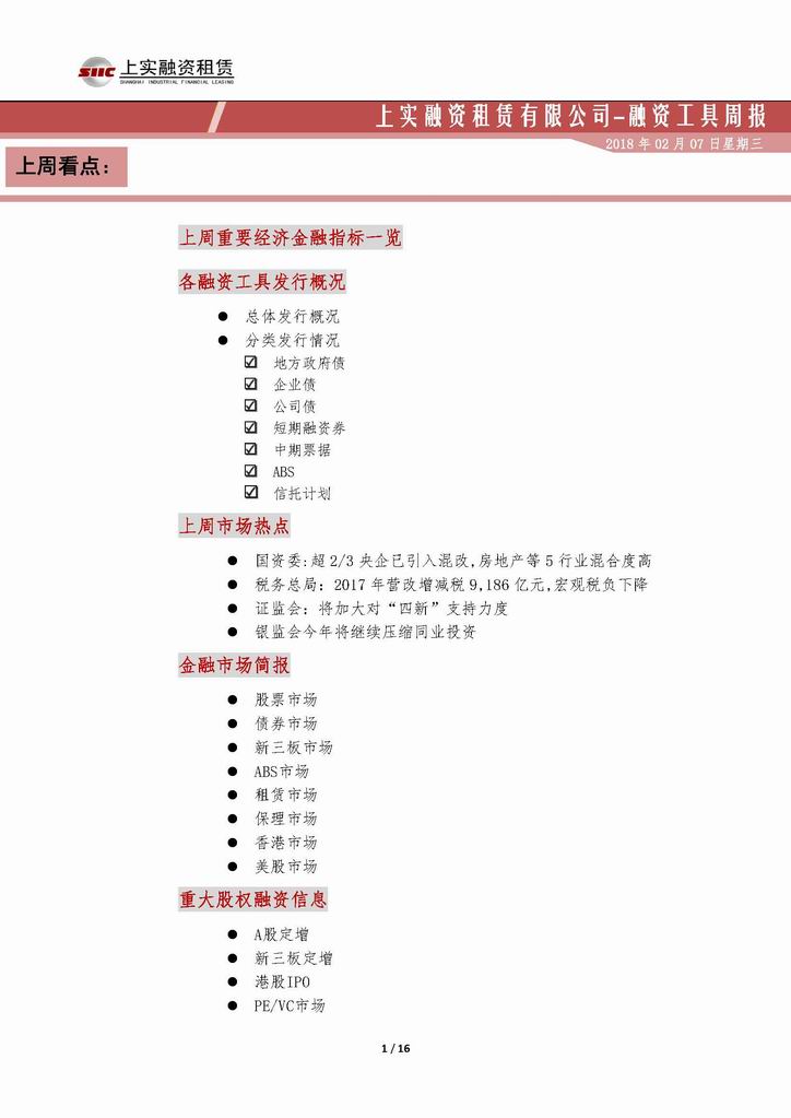 | 當前位置:新聞中心 > 上實-融資工具周報20180126-20180202 | |||||
