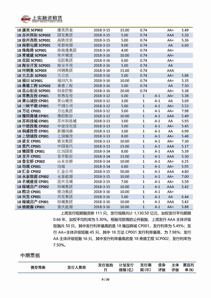 | 當前位置:新聞中心 > 上實-融資工具周報20180309-20180316 | |||||