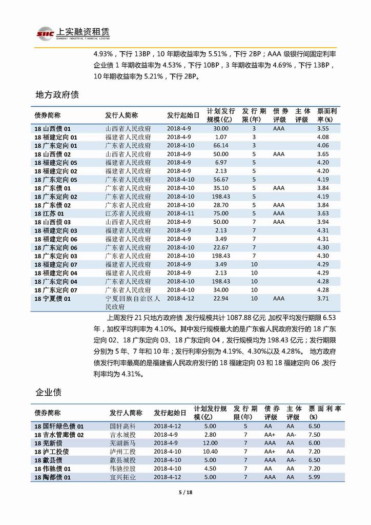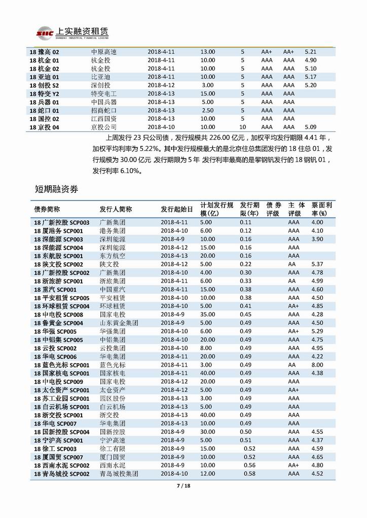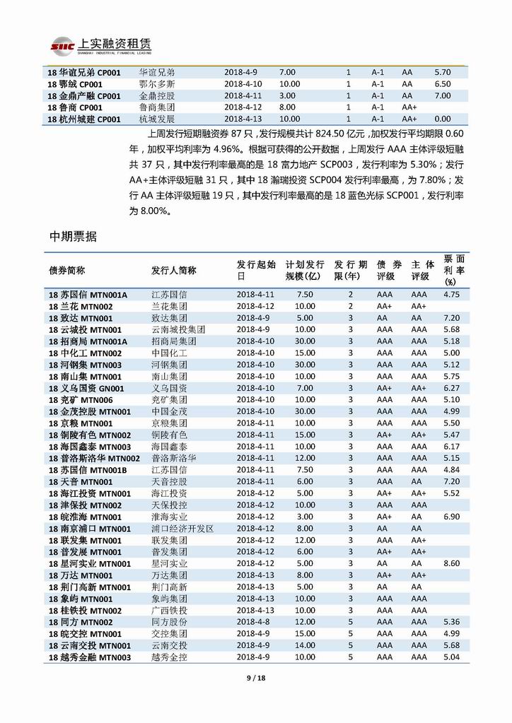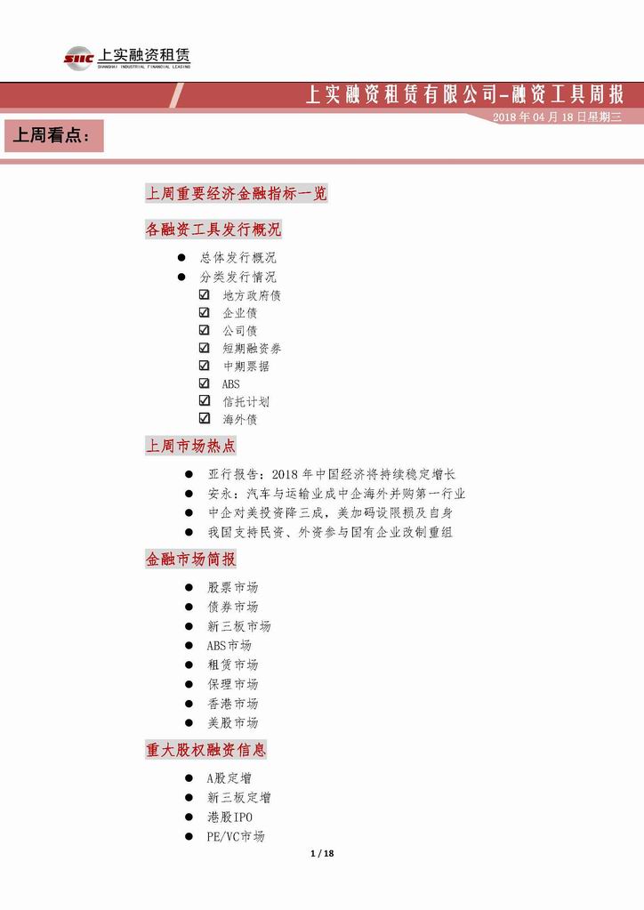 | 當(dāng)前位置:新聞中心 > 上實(shí)-融資工具周報(bào)20180406-20180413 | |||||