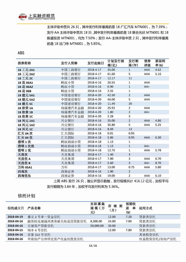 | 當(dāng)前位置:新聞中心 > 上實(shí)-融資工具周報(bào)20180413-20180420 | |||||