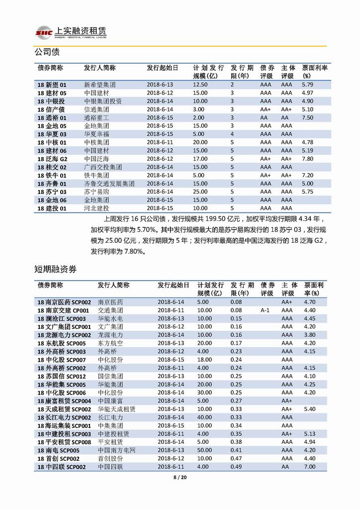 | 當(dāng)前位置:新聞中心 > 上實-融資工具周報20180608-20180615 | |||||