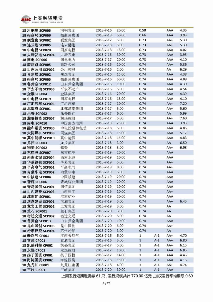 | 當(dāng)前位置:新聞中心 > 上實(shí)-融資工具周報(bào)20180713-20180720 | |||||
