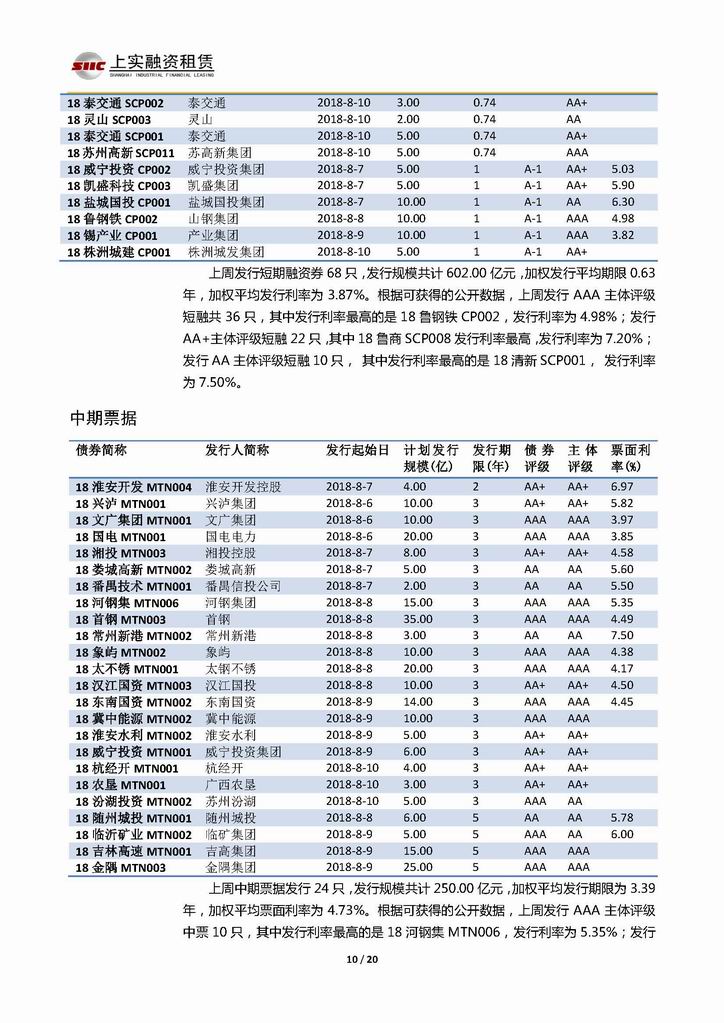 | 當(dāng)前位置:新聞中心 > 上實(shí)-融資工具周報(bào)20180803-20180810 | |||||