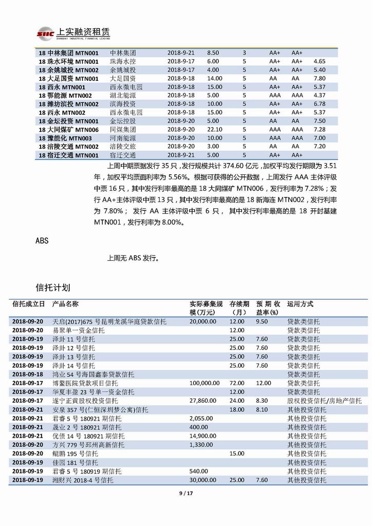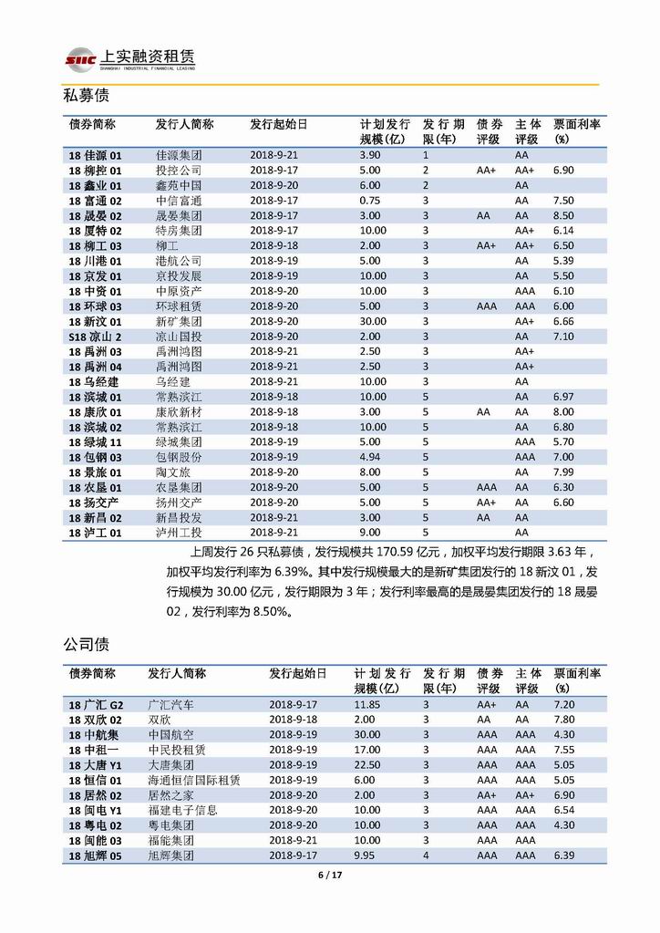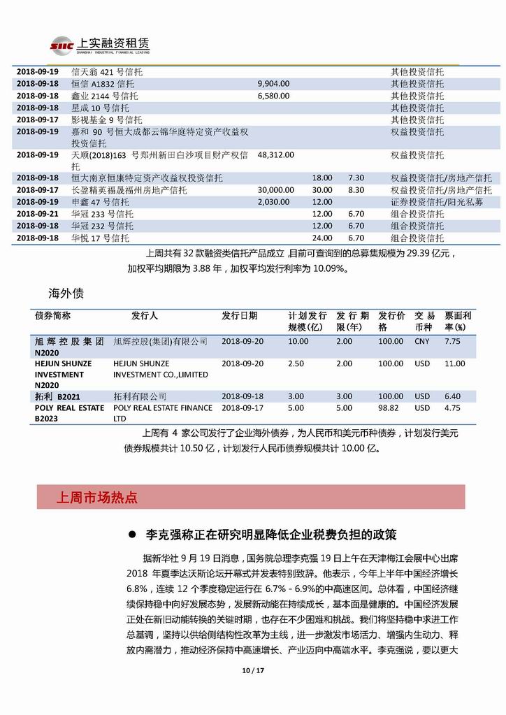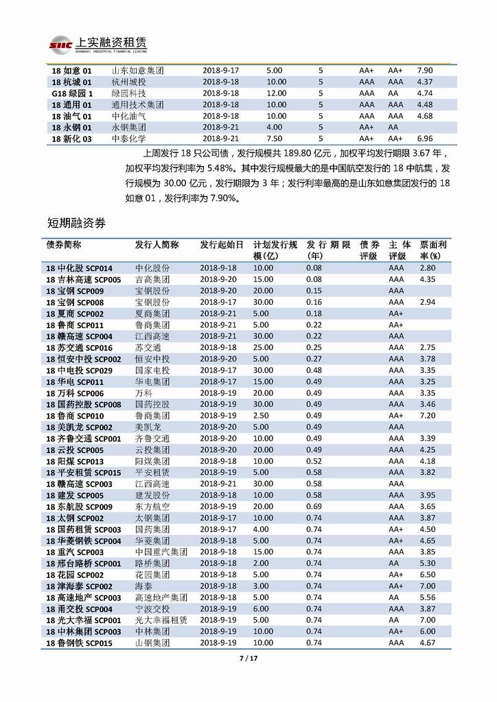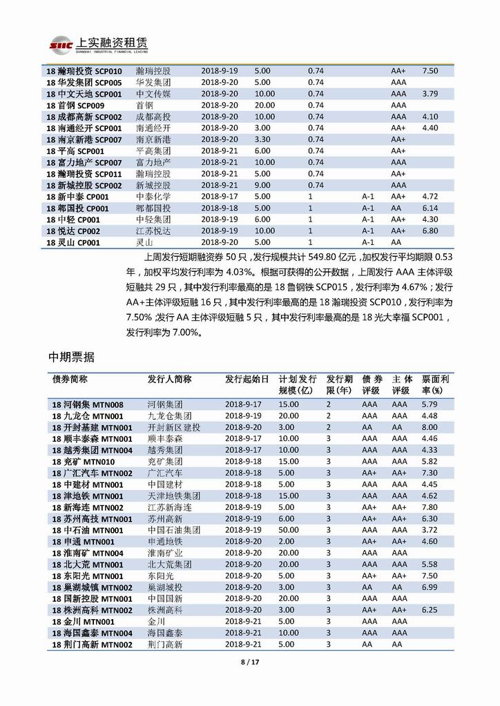 | 當(dāng)前位置:新聞中心 > 上實(shí)-融資工具周報(bào)20180914-20180921 | |||||