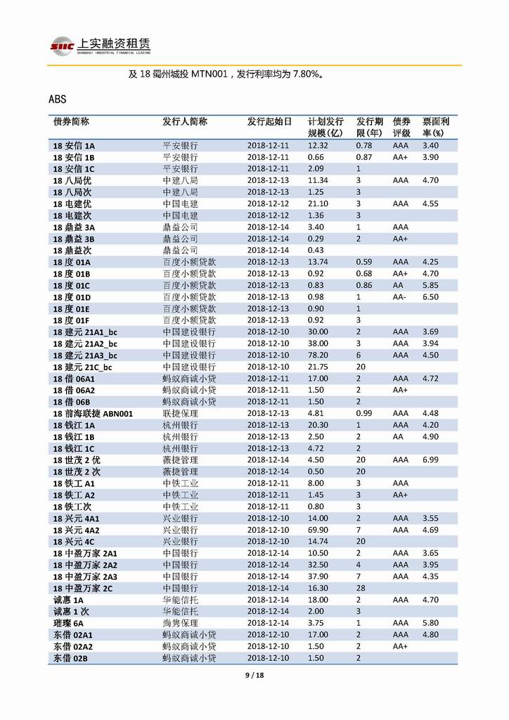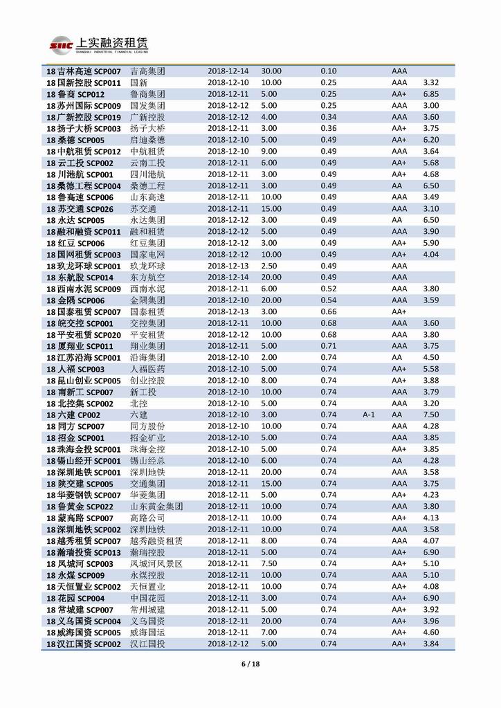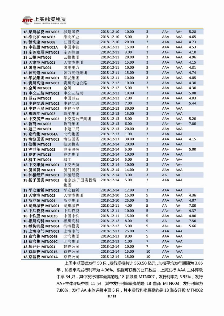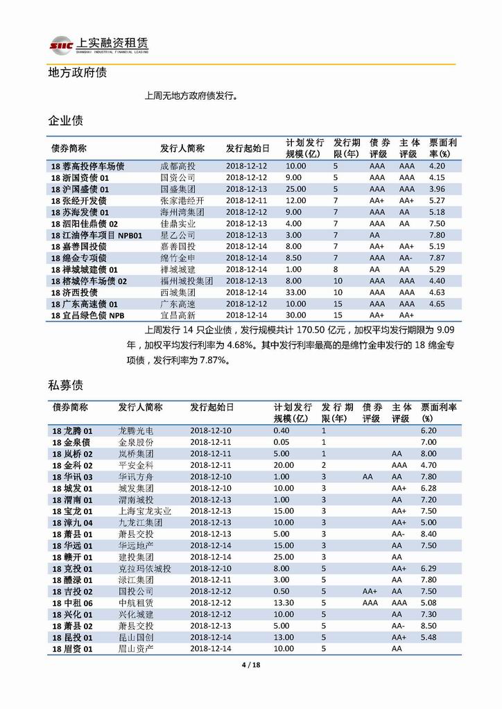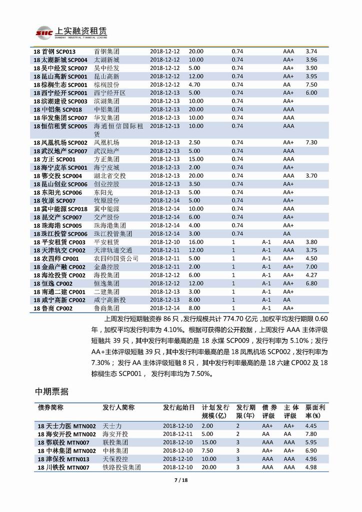 | 當(dāng)前位置:新聞中心 > 上實-融資工具周報20181207-20181214 | |||||