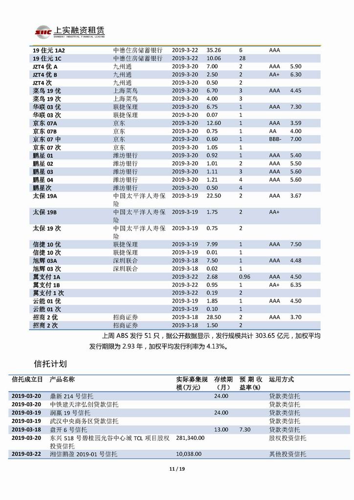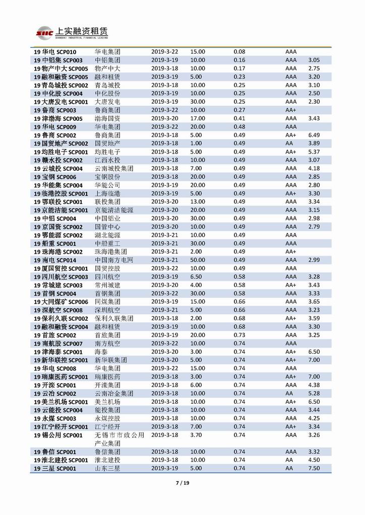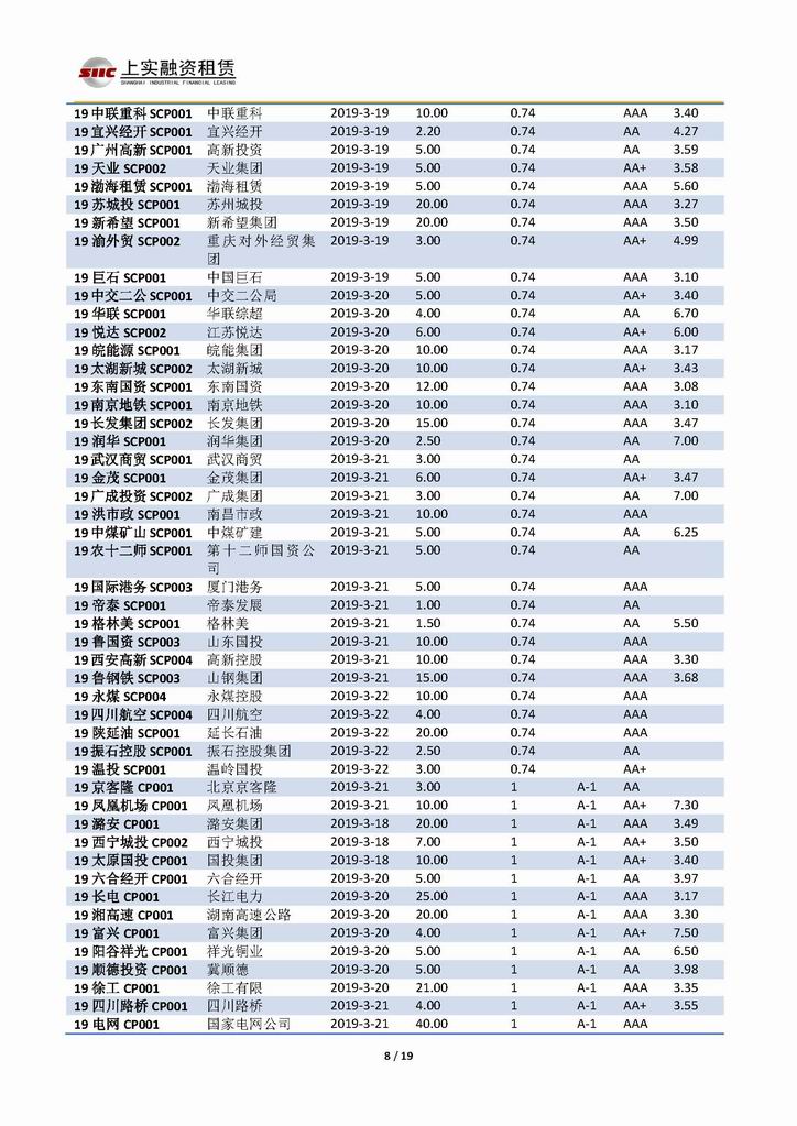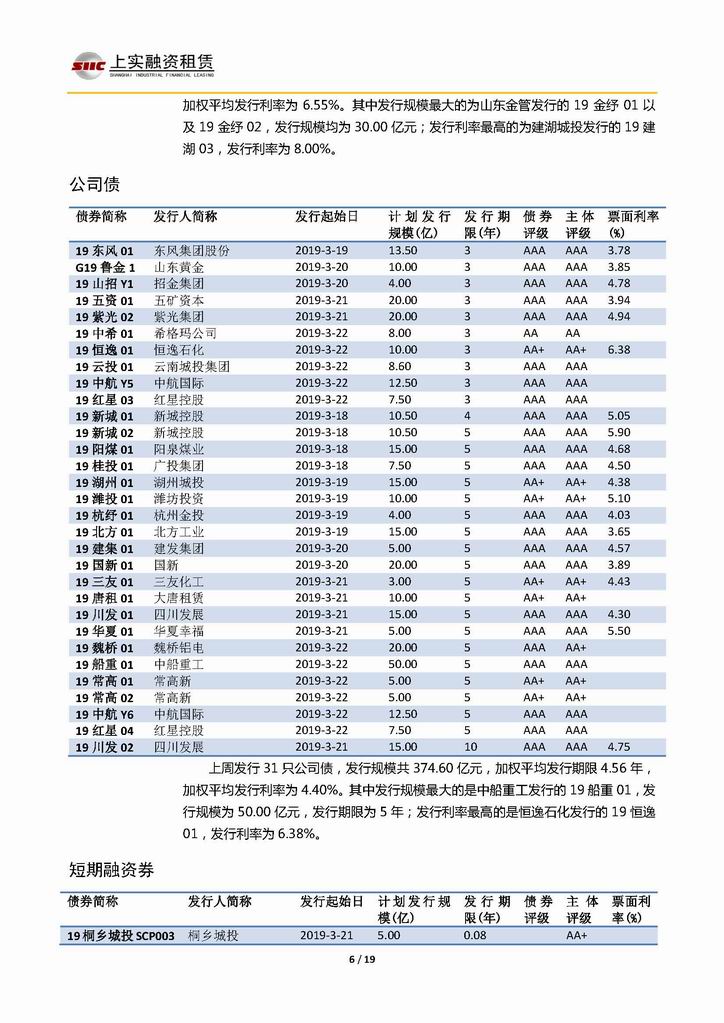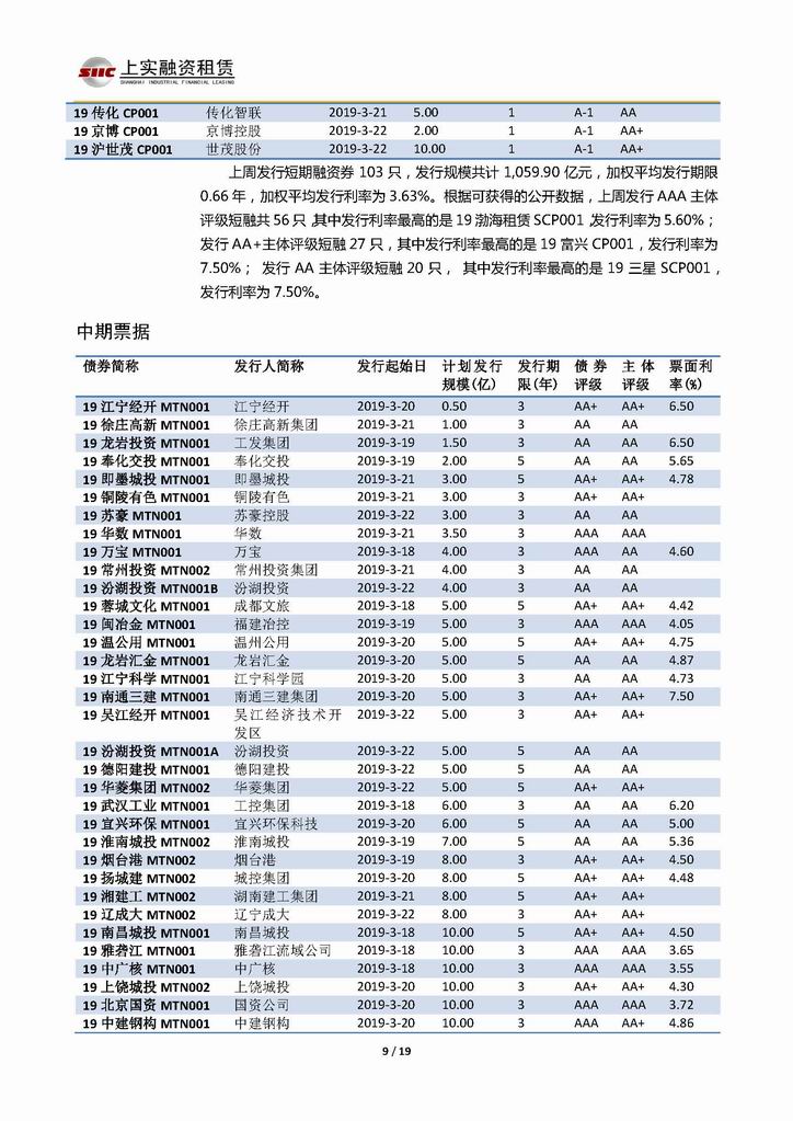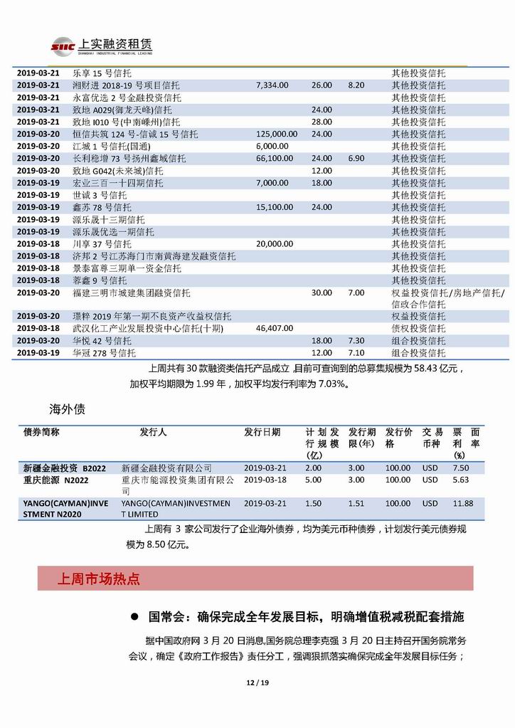 | 當(dāng)前位置:新聞中心 > 上實-融資工具周報20190315-20190322 | |||||