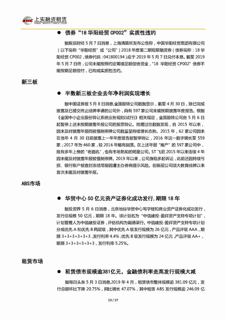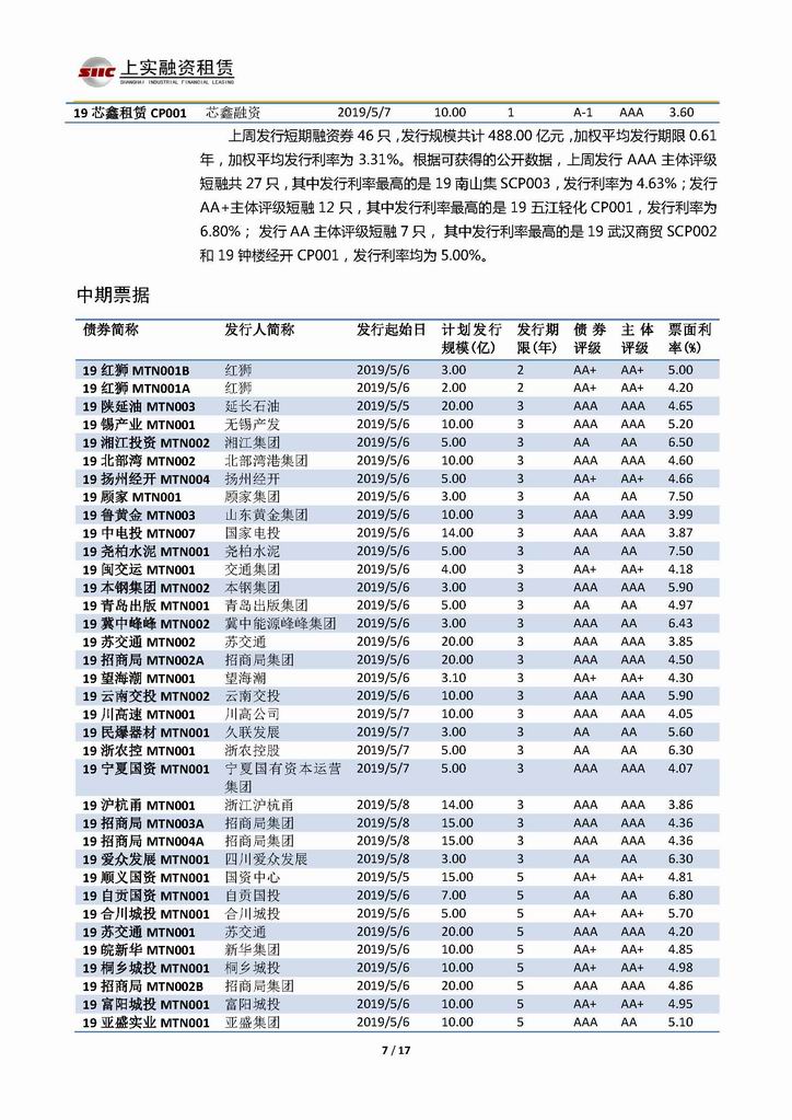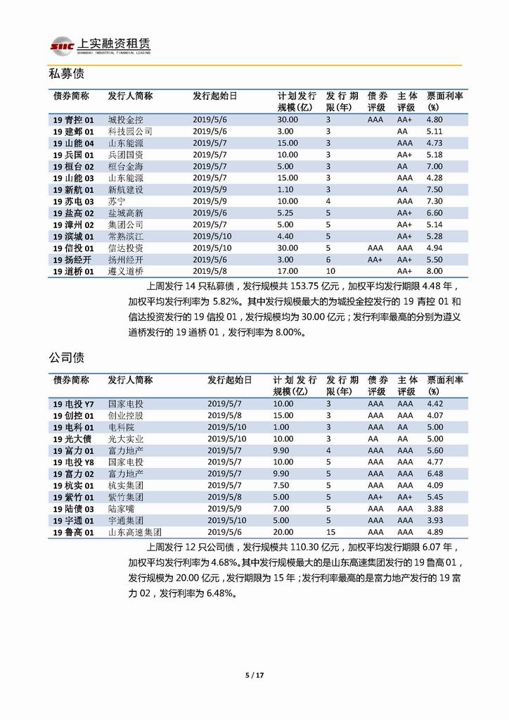 當前位置:新聞中心 > 上實-融資工具周報20190503-20190510