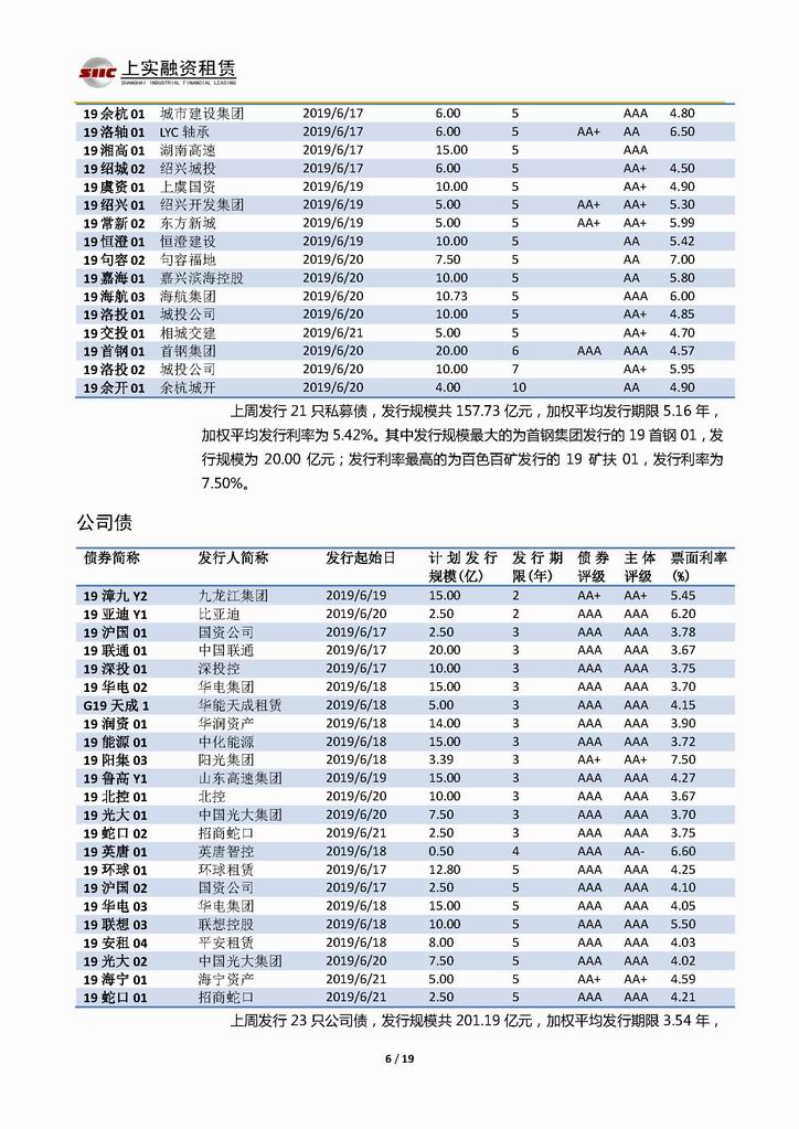 | 當(dāng)前位置:新聞中心 > 上實-融資工具周報2019.6.14-2019.6.21 | |||||