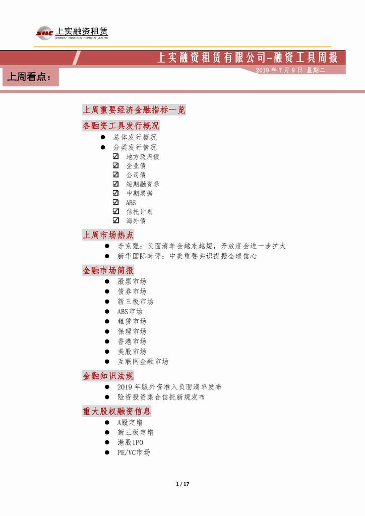 | 當前位置:新聞中心 > 上實-融資工具周報2019.7.1-2019.7.5 | |||||