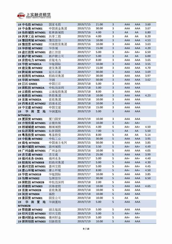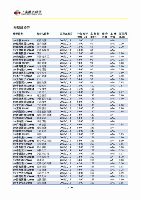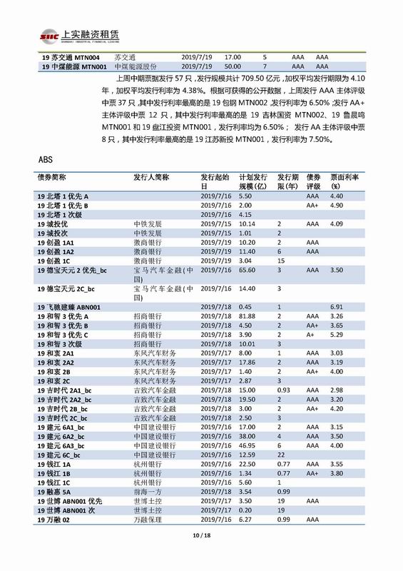 | 當(dāng)前位置:新聞中心 > 上實(shí)-融資工具周報(bào)2019.7.15-2019.7.19 | |||||