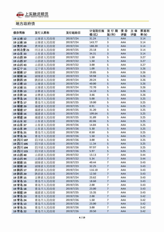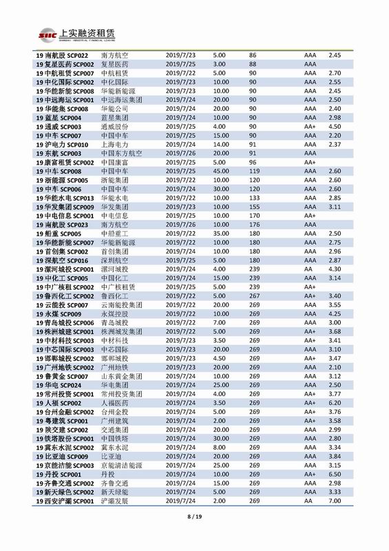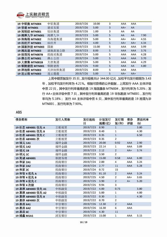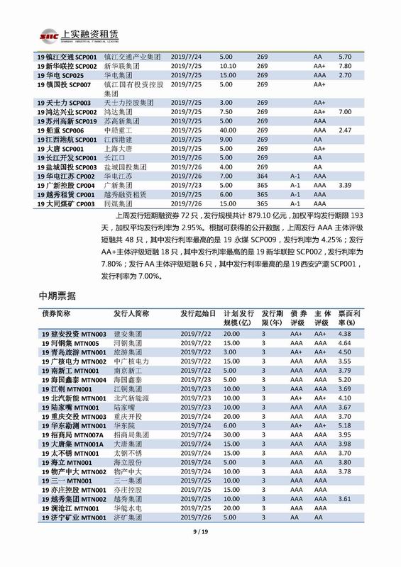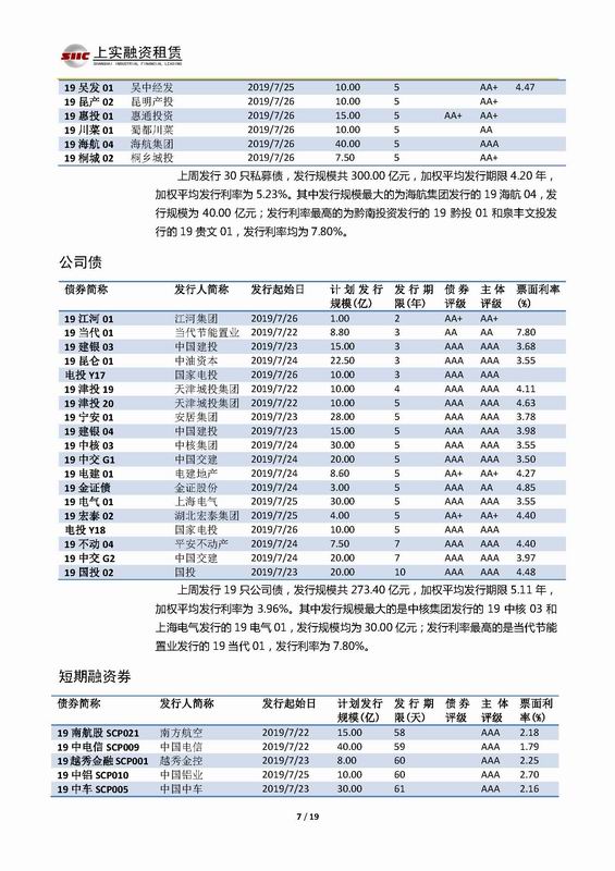 | 當前位置:新聞中心 > 上實-融資工具周報2019.7.22-2019.7.26 | |||||