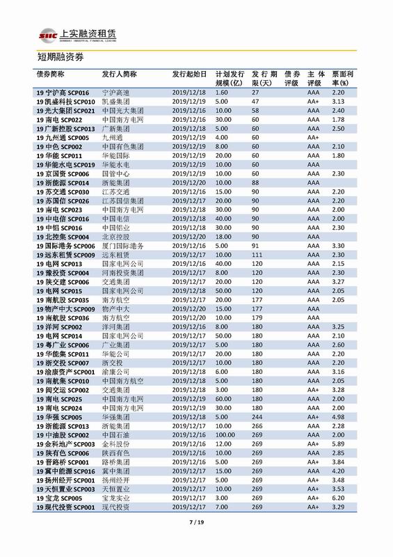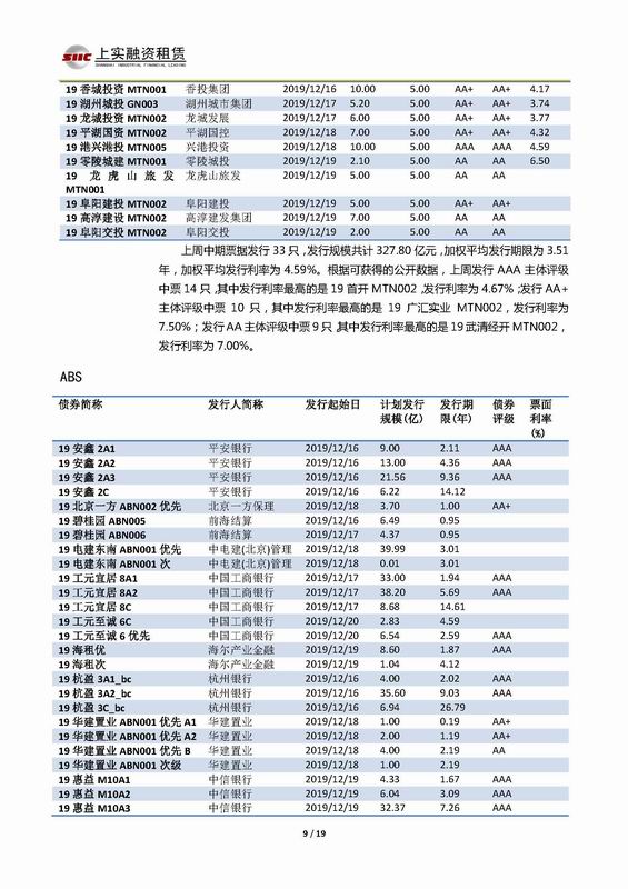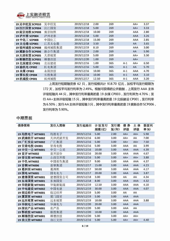 | 當(dāng)前位置:新聞中心 > 上實(shí)-融資工具周報(bào)2019.12.16-2019.12.20 | |||||