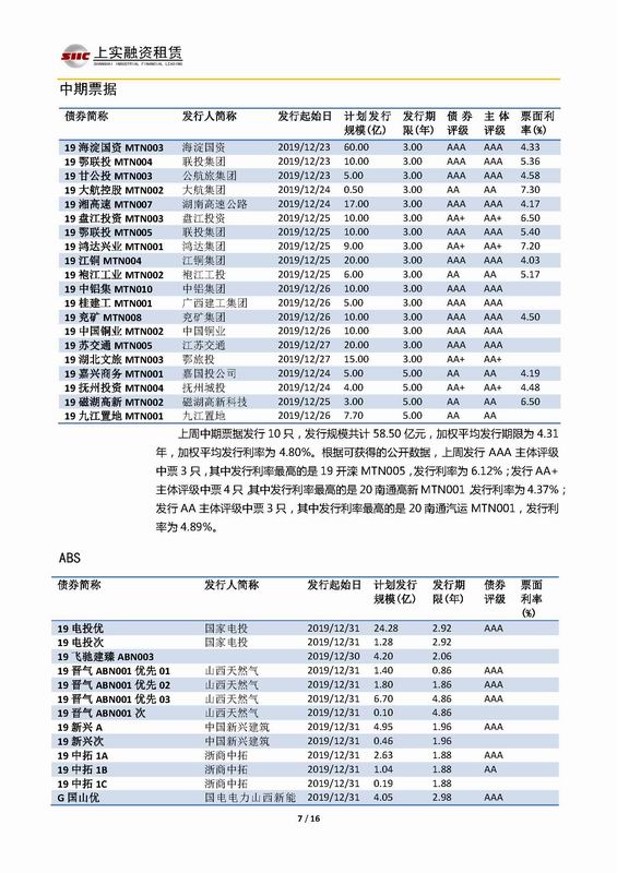 | 當(dāng)前位置:新聞中心 > 上實(shí)-融資工具周報(bào)2019.12.30-2020.1.3 | |||||
