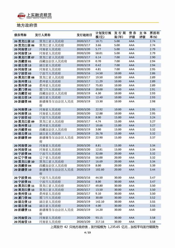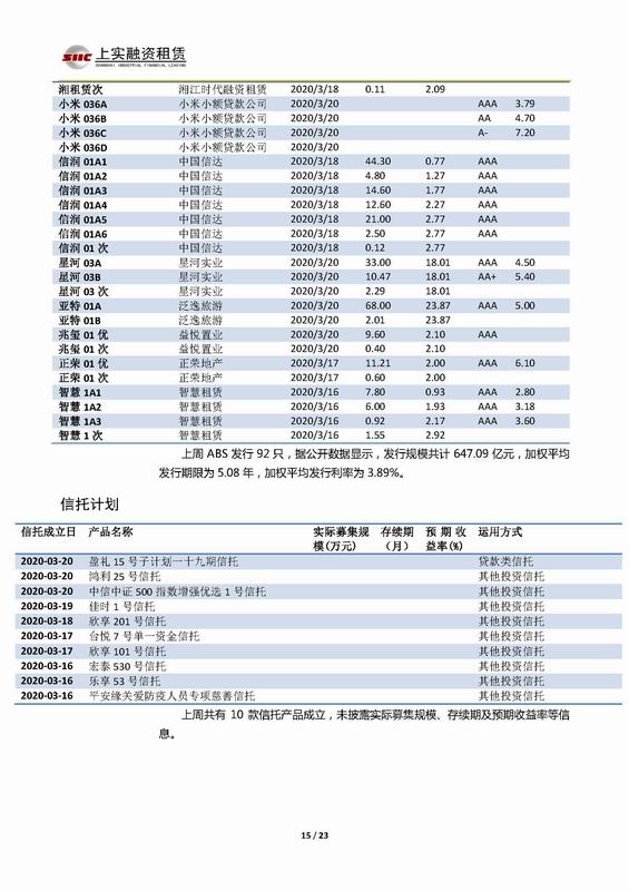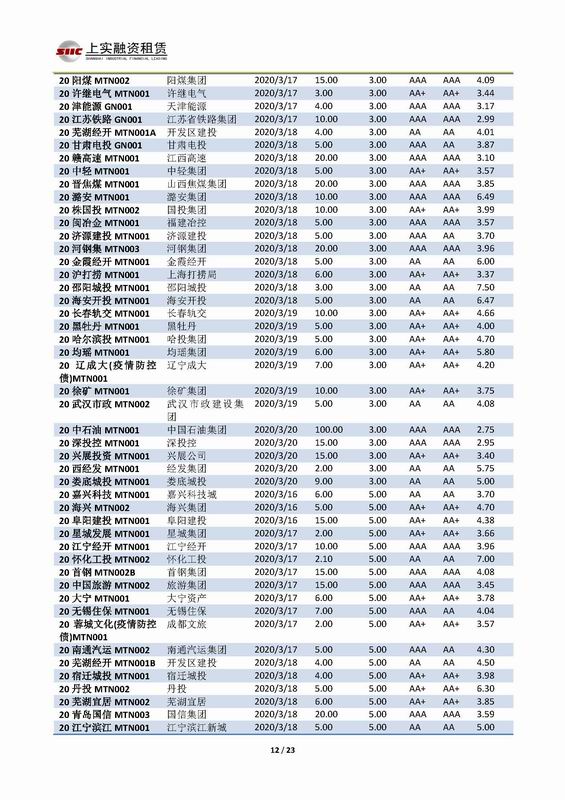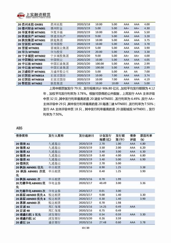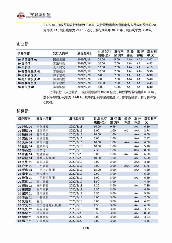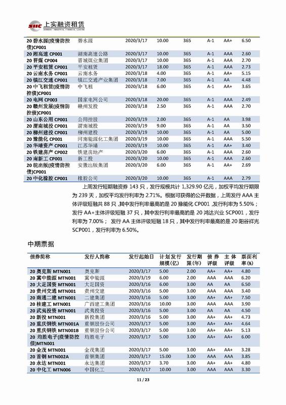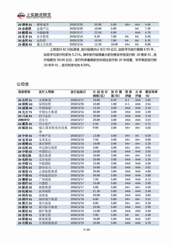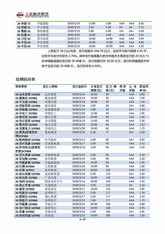 上實(shí)-融資工具周報(bào)2020.3.16-2020.3.20
