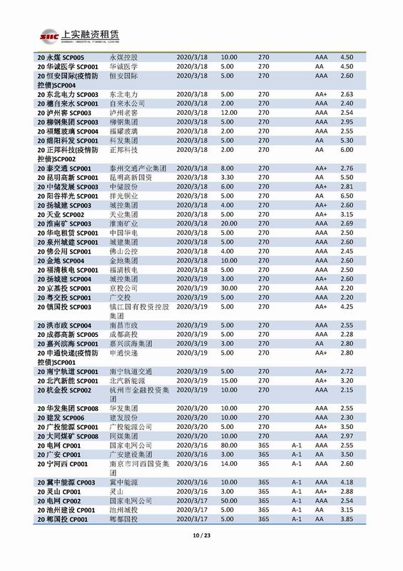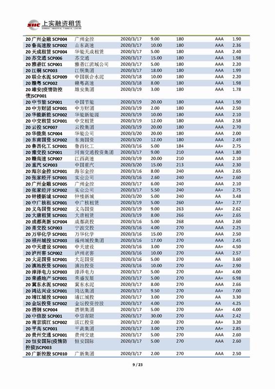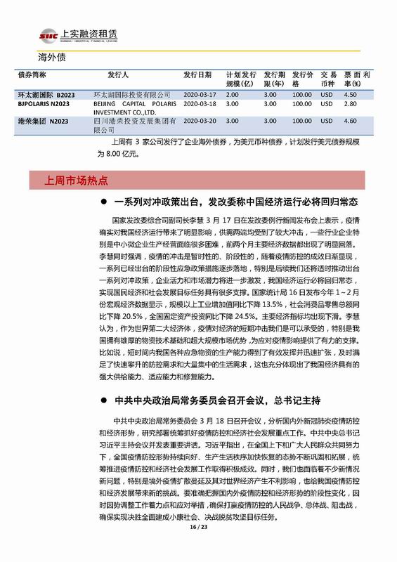 當(dāng)前位置:新聞中心 > 上實(shí)-融資工具周報(bào)2020.3.16-2020.3.20