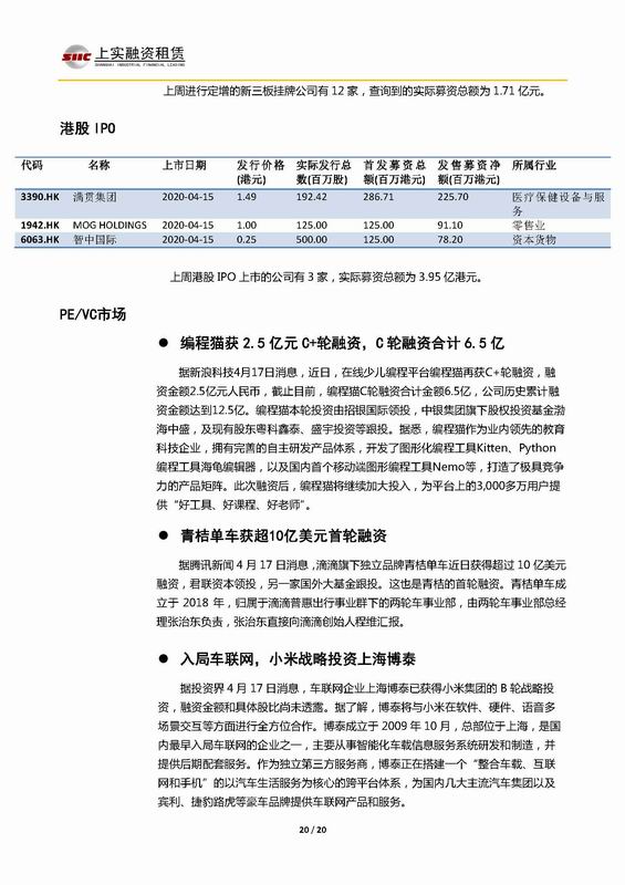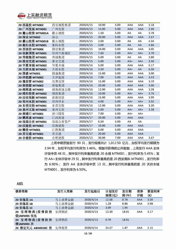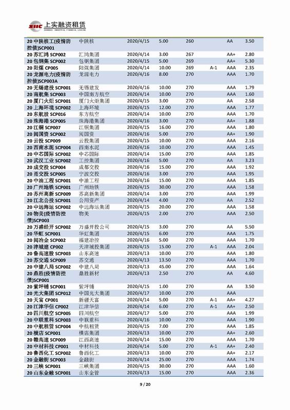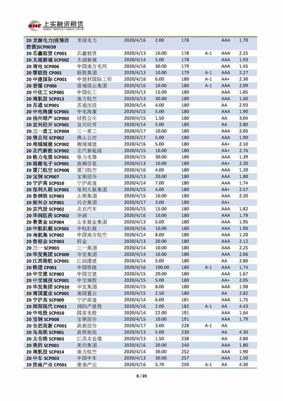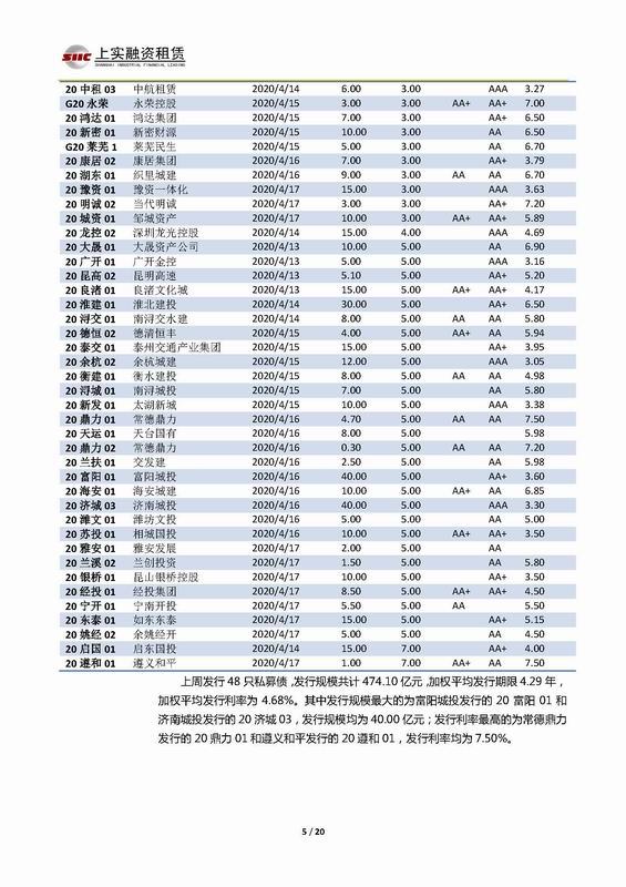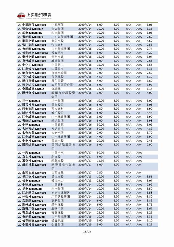 | 當(dāng)前位置:新聞中心 > 上實-融資工具周報2020.4.13-2020.4.17 | |||||