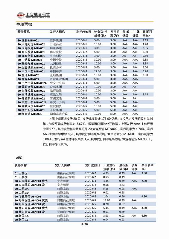 | 當(dāng)前位置:新聞中心 > 上實(shí)-融資工具周報(bào)2020.6.1-2020.6.5 | |||||
