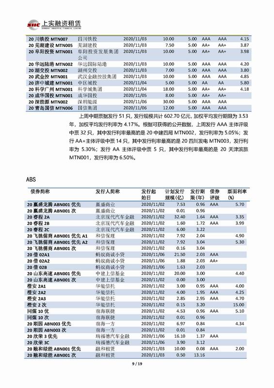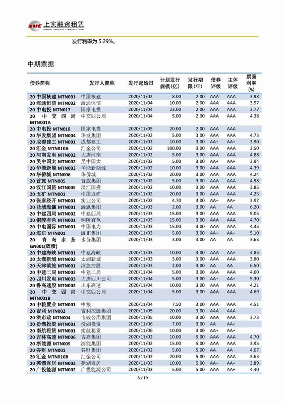 當前位置:新聞中心 > 上實-融資工具周報2020.11.2-2020.11.6