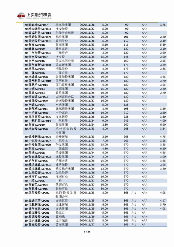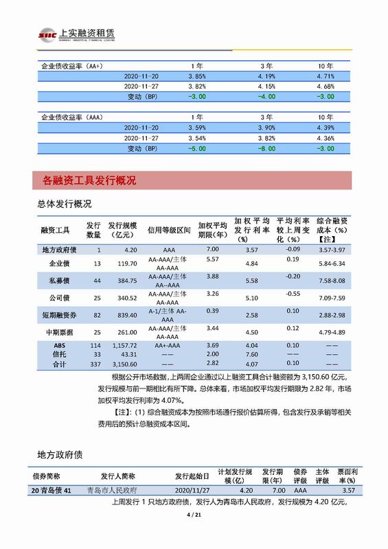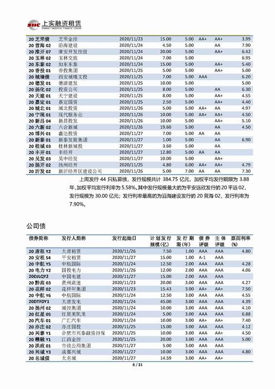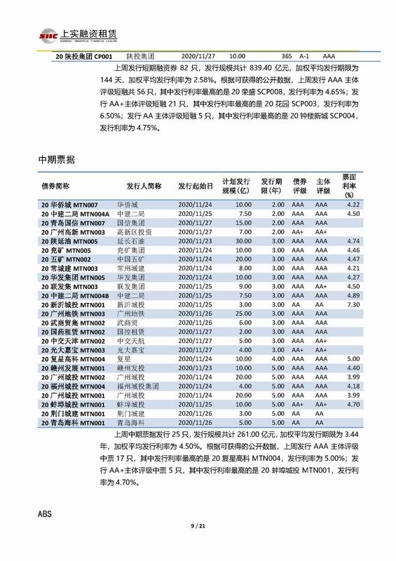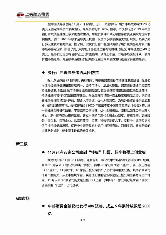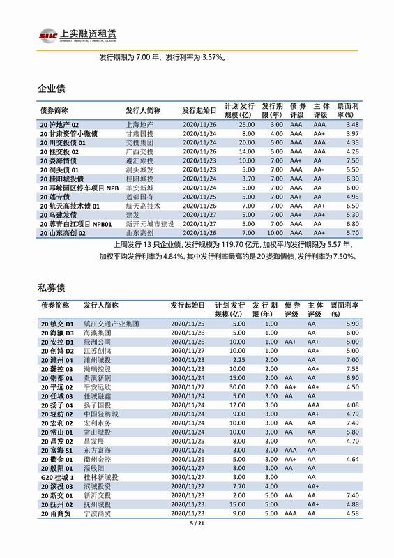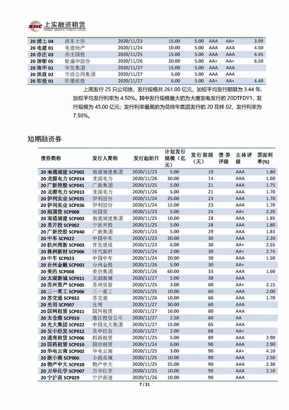 上實(shí)-融資工具周報(bào)2020.11.23-2020.11.27