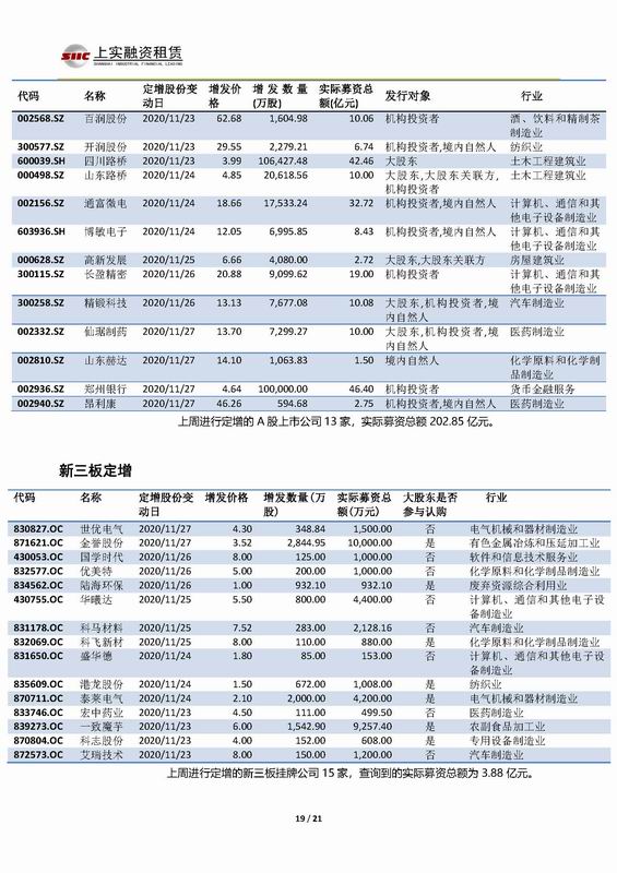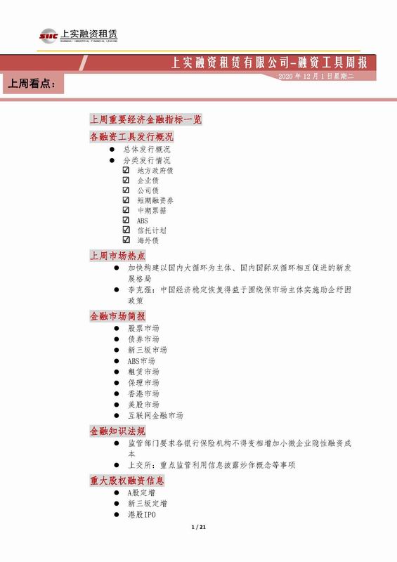 當(dāng)前位置:新聞中心 > 上實(shí)-融資工具周報(bào)2020.11.23-2020.11.27