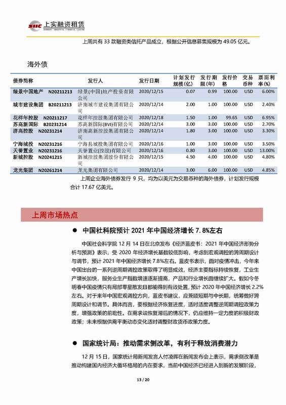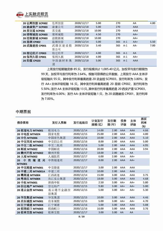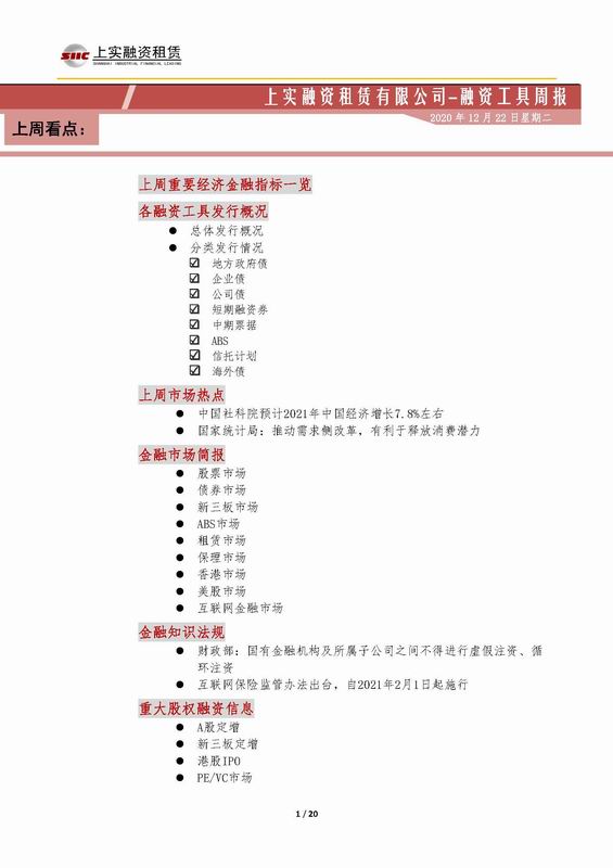 | 當(dāng)前位置:新聞中心 > 上實(shí)-融資工具周報(bào)2020.12.14-2020.12.18 | |||||