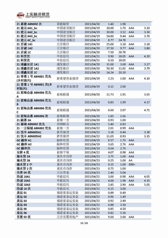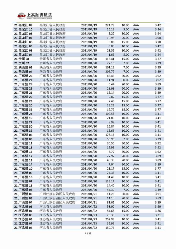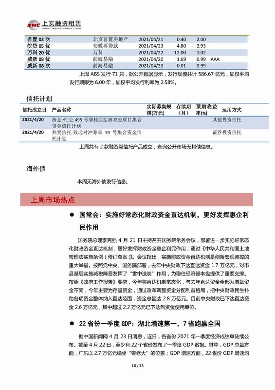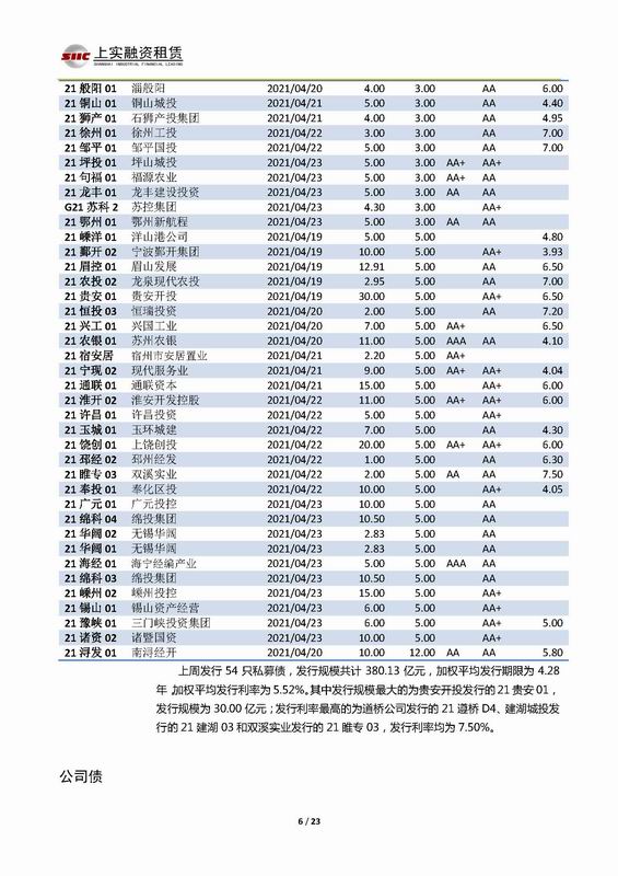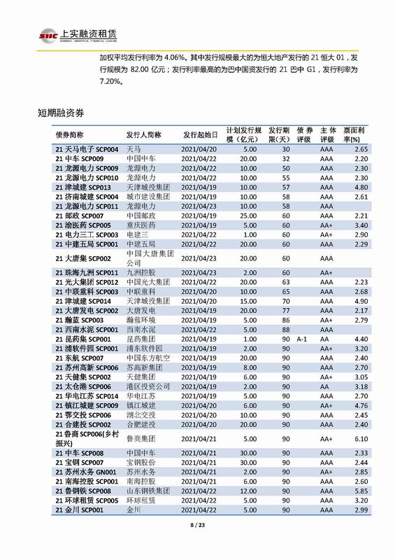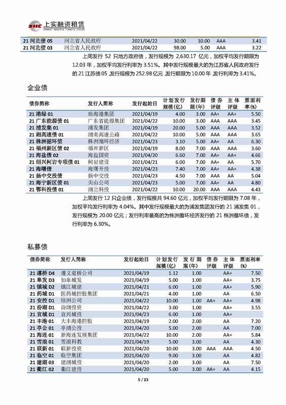 | 當(dāng)前位置:新聞中心 > 上實(shí)-融資工具周報(bào)2021.4.19-2021.4.23 | |||||