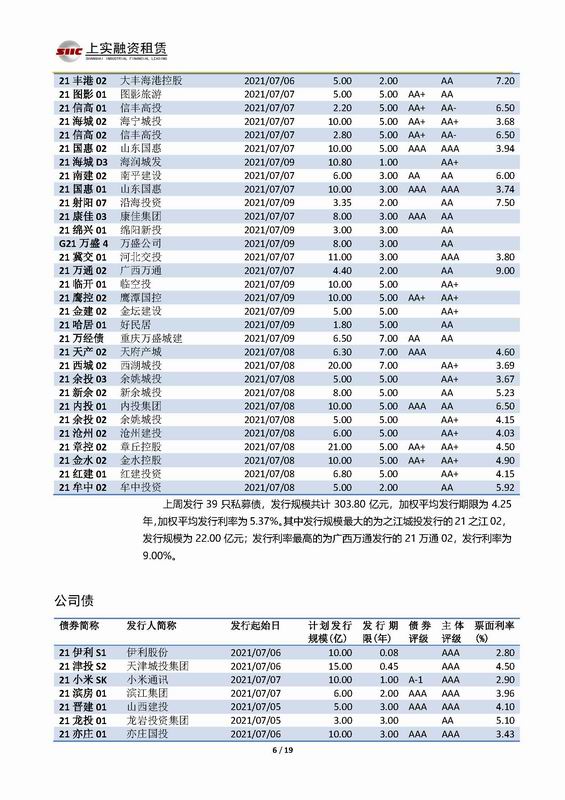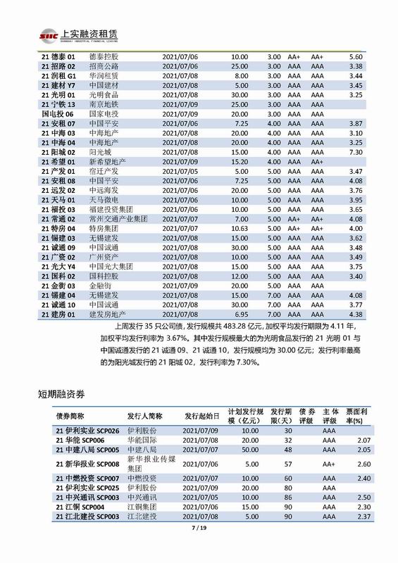 | 當(dāng)前位置:新聞中心 > 上實-融資工具周報2021.7.5-2021.7.9 | |||||