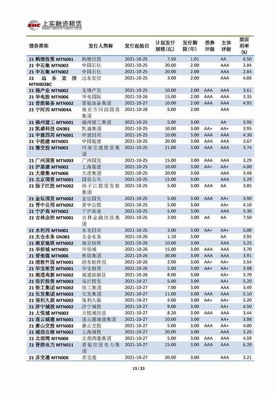 | 當前位置:新聞中心 > 上實-融資工具周報2021.10.25-2021.10.29 | |||||