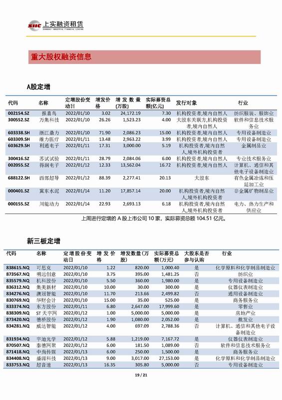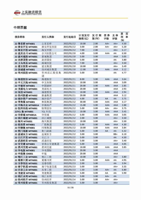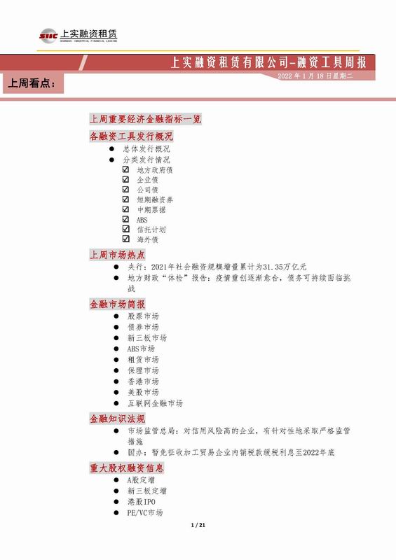 當(dāng)前位置:新聞中心 > 上實(shí)-融資工具周報(bào)2021.1.10-2021.1.14