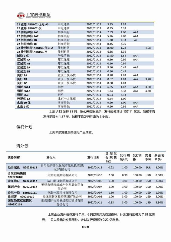 上實(shí)-融資工具周報(bào)2021.1.10-2021.1.14