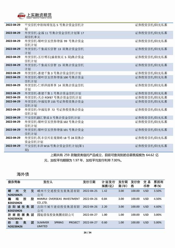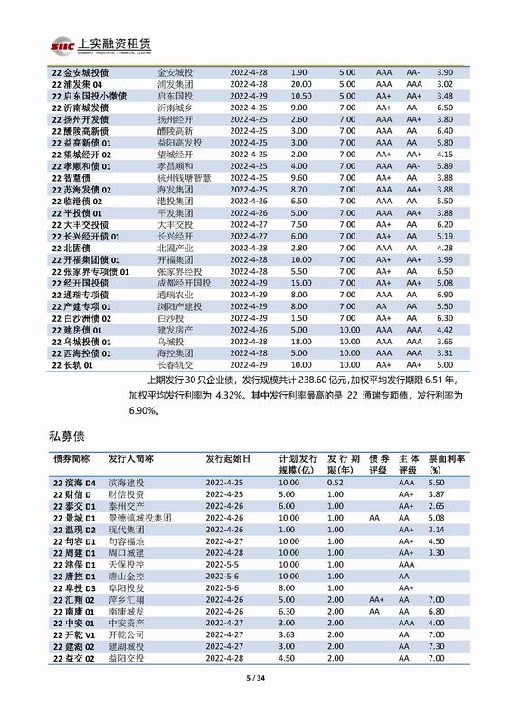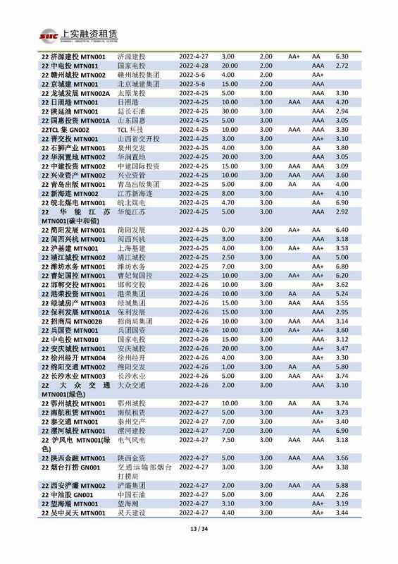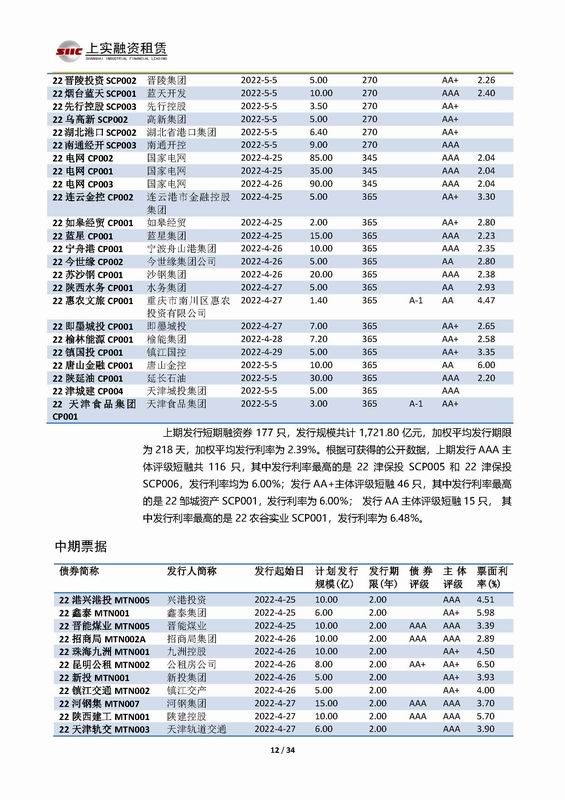 | 當(dāng)前位置:新聞中心 > 上實-融資工具周報2022.4.25-2022.5.6 | |||||