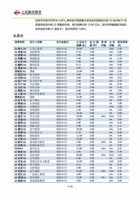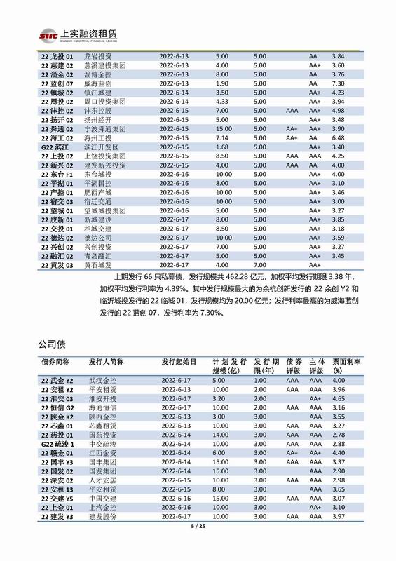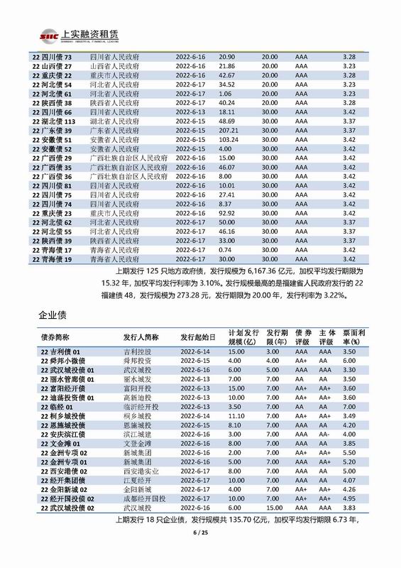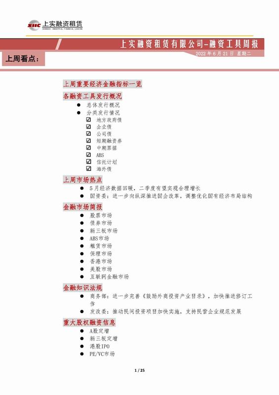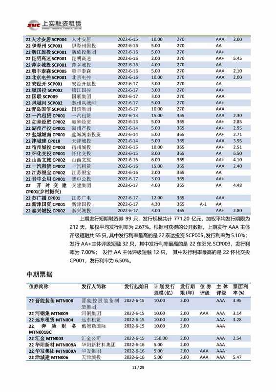 上實-融資工具周報2022.6.13-2022.6.17
