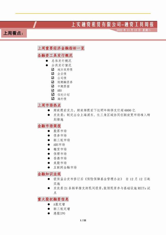 | 當(dāng)前位置:新聞中心 > 上實(shí)-融資工具周報(bào)2022.11.7-2022.11.11 | |||||