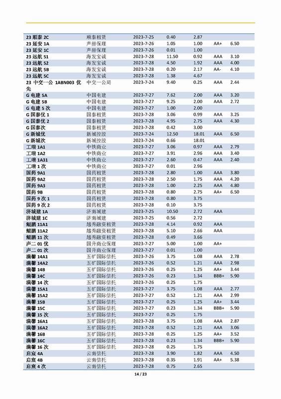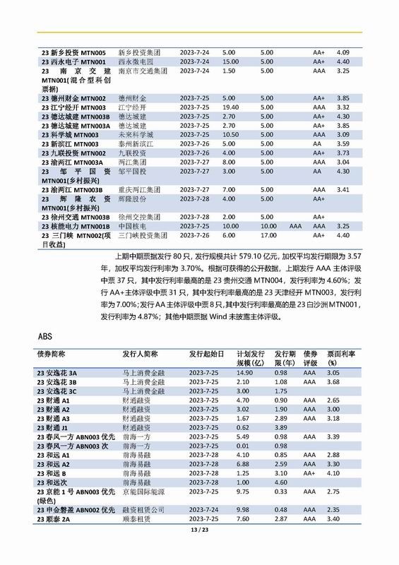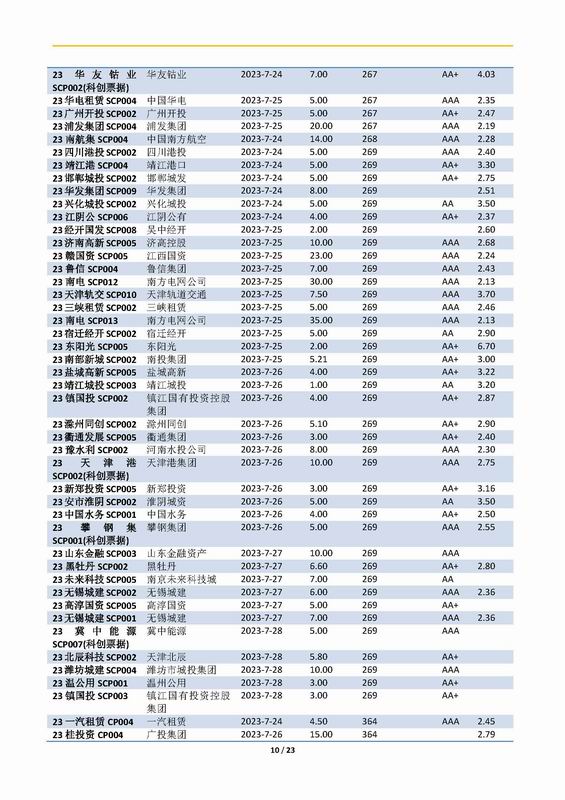 | 當前位置:新聞中心 > 上實-融資工具周報2023.7.24-2023.7.28 | |||||