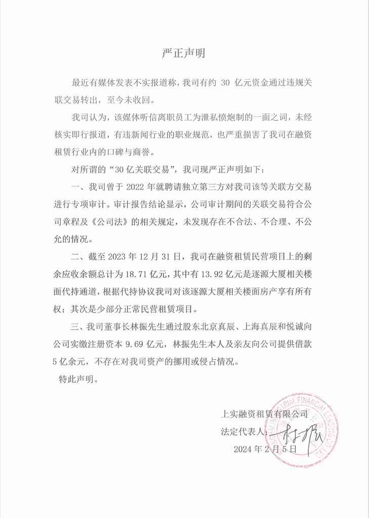 最近有媒體發(fā)表不實報道稱,我司有約 30 億元資金通過違規(guī)關聯(lián)交易轉出,至今未收回。